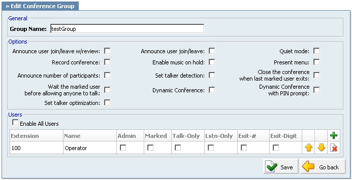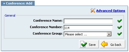 Here you can select a conference group that you have made before. In this group you can define users permissions and conference options.