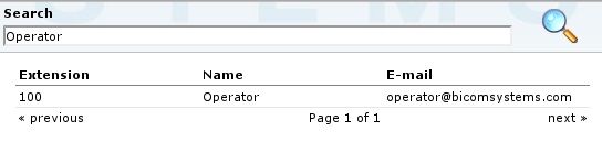 There are two options for enabling users to join specific conference room. You can either enable all users by selecting check box for Enable All Users option or you can manually add users by clicking + sign in upper right corner of the Users table. This will open Conference Groups: Add User pop-up window where you can perform search by Extension number, Name or e-mail address. After your search results are displayed, simply click on user that you want to add to Users table.