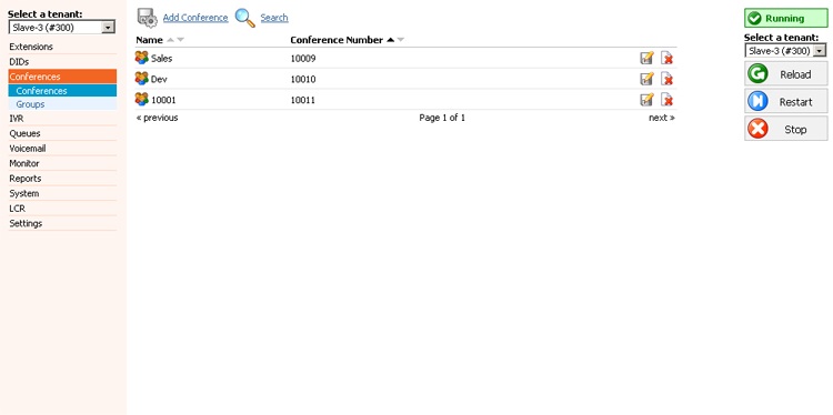 NOTE: You can download the recorded file in Conferences: CDR’s, by selecting a conference and clicking on the Listen button