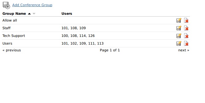 Conference Groups are used to make groups of users that will have selected permissions for conferences using them.