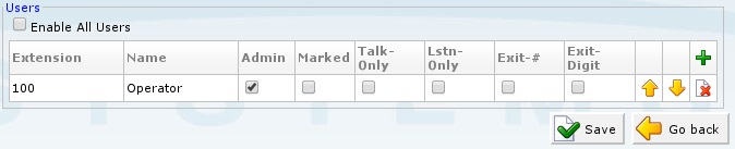 Sets the admin conference mode. If this option is enabled, conference calls coming from the extension will be treated with admin privileges